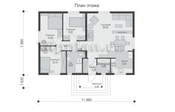 | Размеры дома: | 7.98м×11.98м |