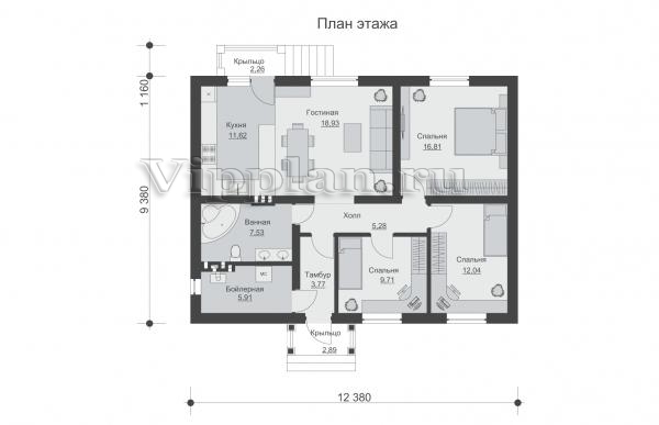 | Размеры дома: | 11.74м×12.38м |