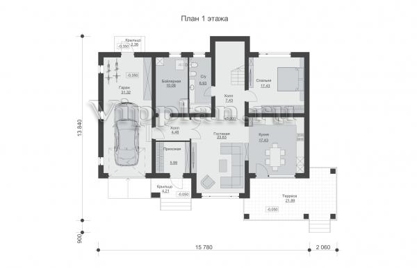 | Размеры дома: | 13.84м×17.84м |